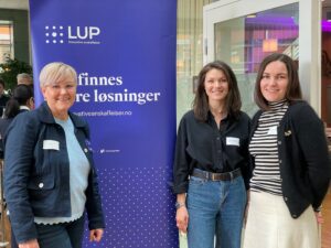 Ida-Christine og Hanne fra Drammen kommune sammen med Riche som er partnerkontakten i LUP